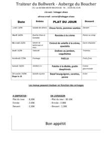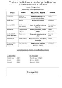 Le Traiteur du Bollwerk et l’Auberge du Boucher proposent un menu qui change chaque jour !